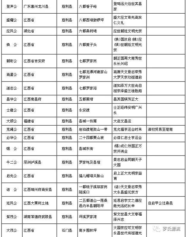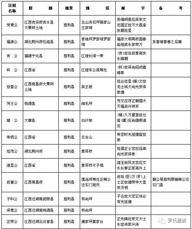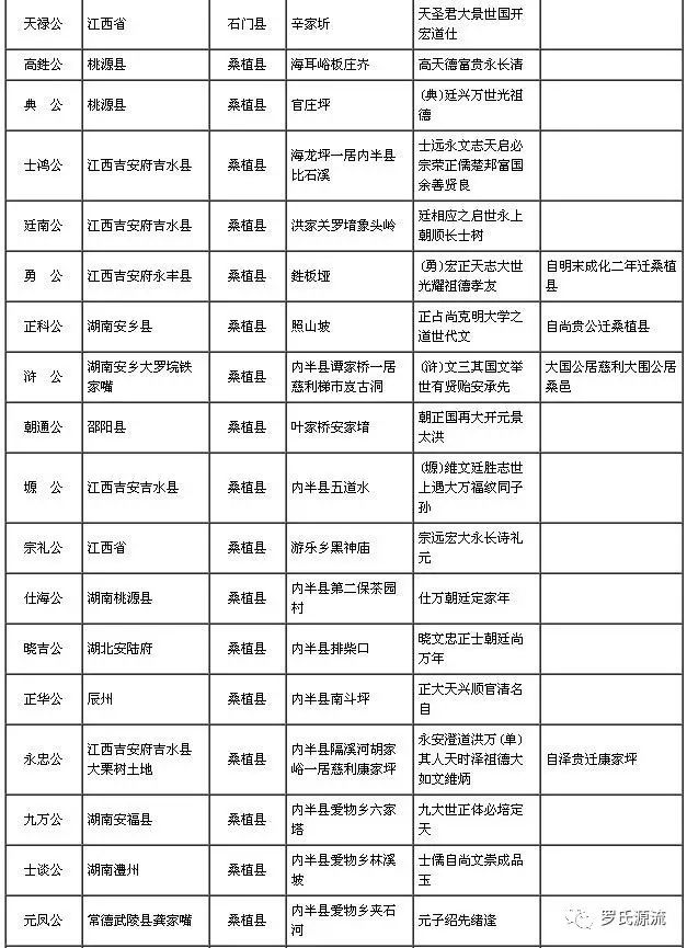 慈桑石罗氏各支迁祖原籍现居及字派表